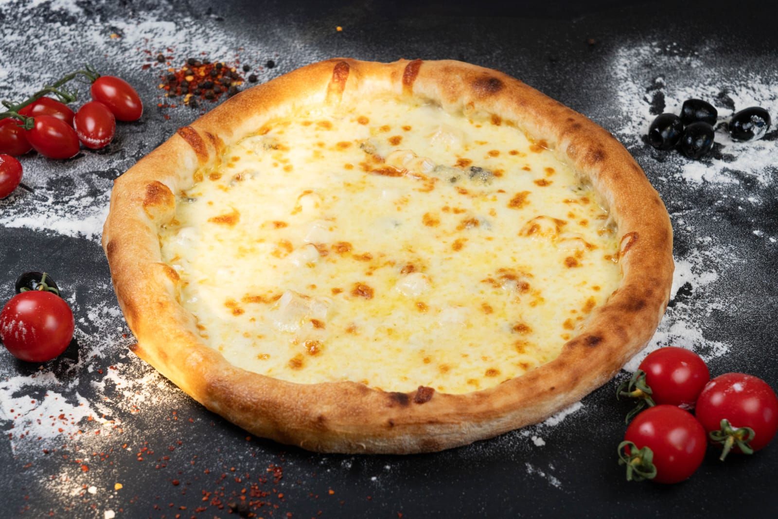 sos rosii, mozzarella, emmentaler, gorgonzola, cheddar
