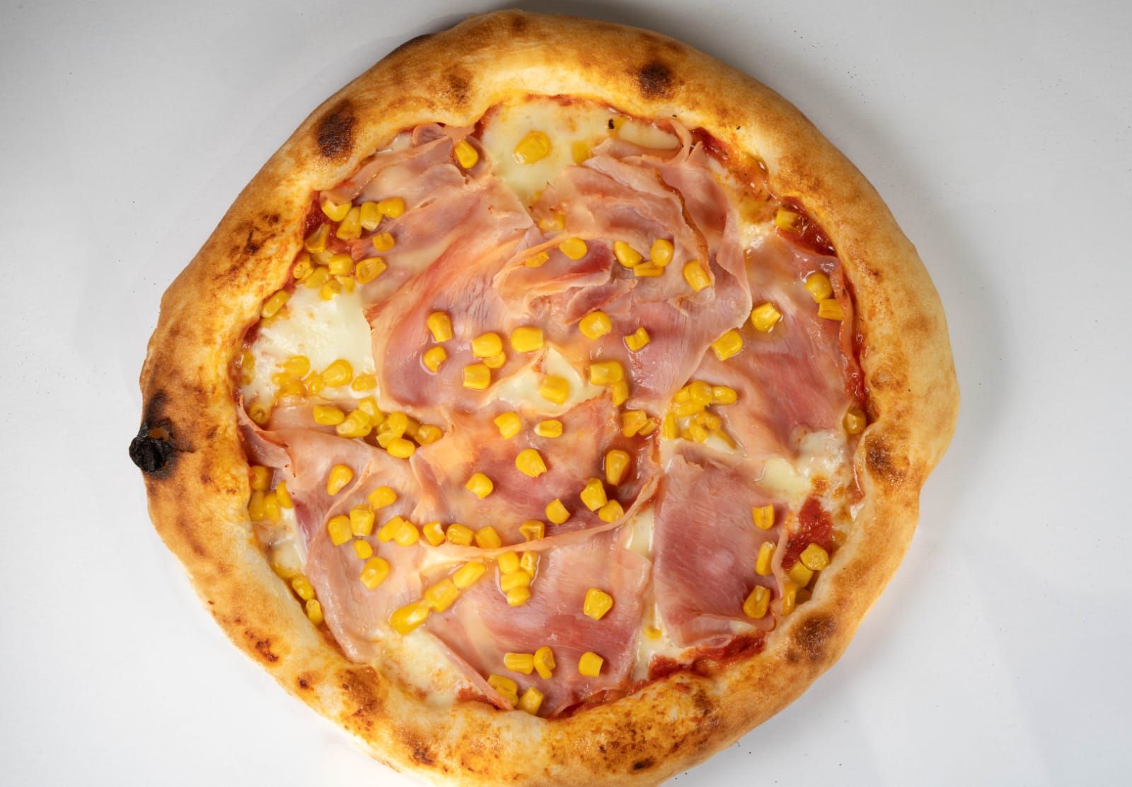 sos rosii, mozzarella, sunca presata, ananas, porumb