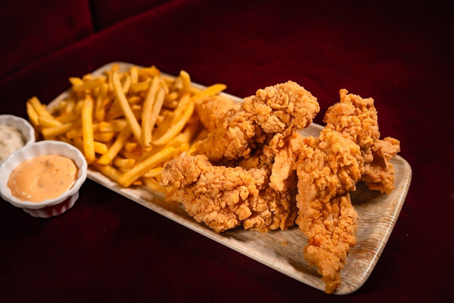 👉16 crispy strips,2 portii cartofi prajiti,3 sosuri la alegere